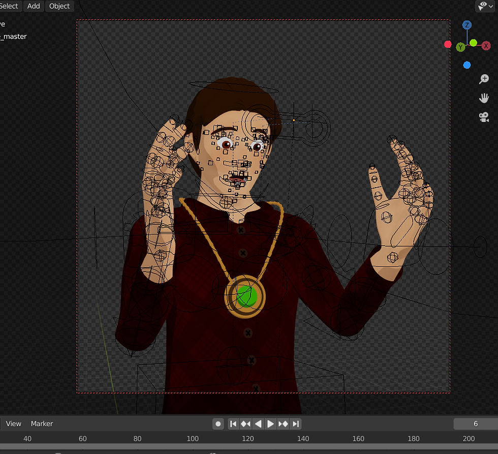 Preview of main character in rendered viewport shading.